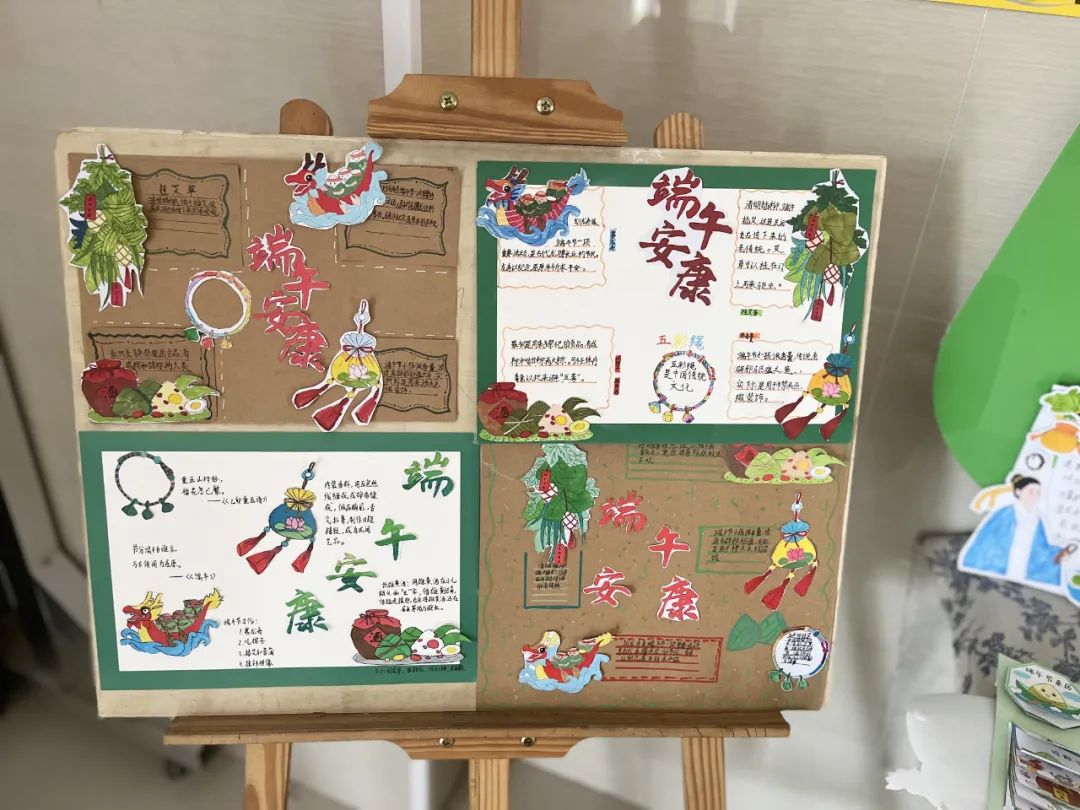 小学部开展 “粽情端午” 多学科活动:数学课堂用纸张制作立体 “粽子”,探索几何之美;语文课堂绘制手抄报、书写书法、设计书签,浸润诗意墨香。劳动实践中,学生采摘艾草制作艾束,“红领巾讲解员” 讲述端午起源、爱国故事及艾草功效,融合自然与文化。活动以鲜花饼传递祝福,让学生在动手与体验中感悟传统内涵,增强文化自信。