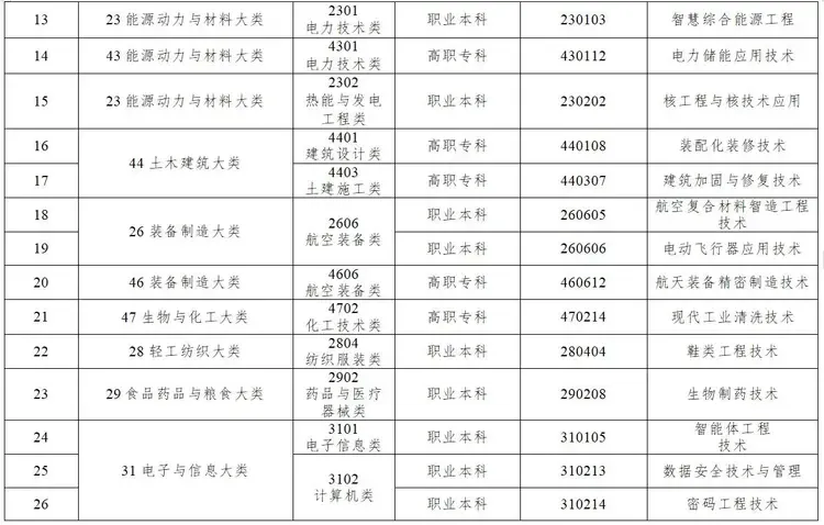 本次职业教育专业增补工作: