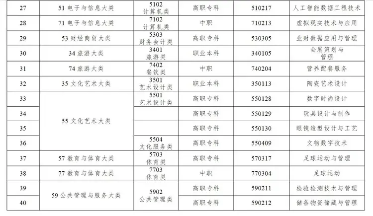 • 聚焦加快建设体育强国,增设足球运动、足球运动与管理等专业。