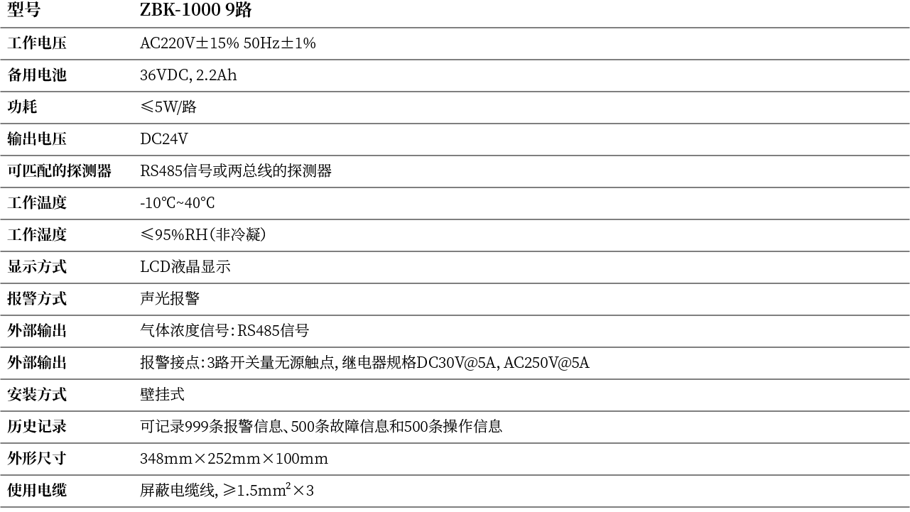 ·可与RS485信号或两总线输出的气体探测器配合